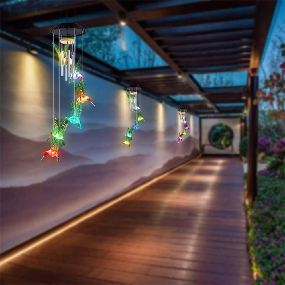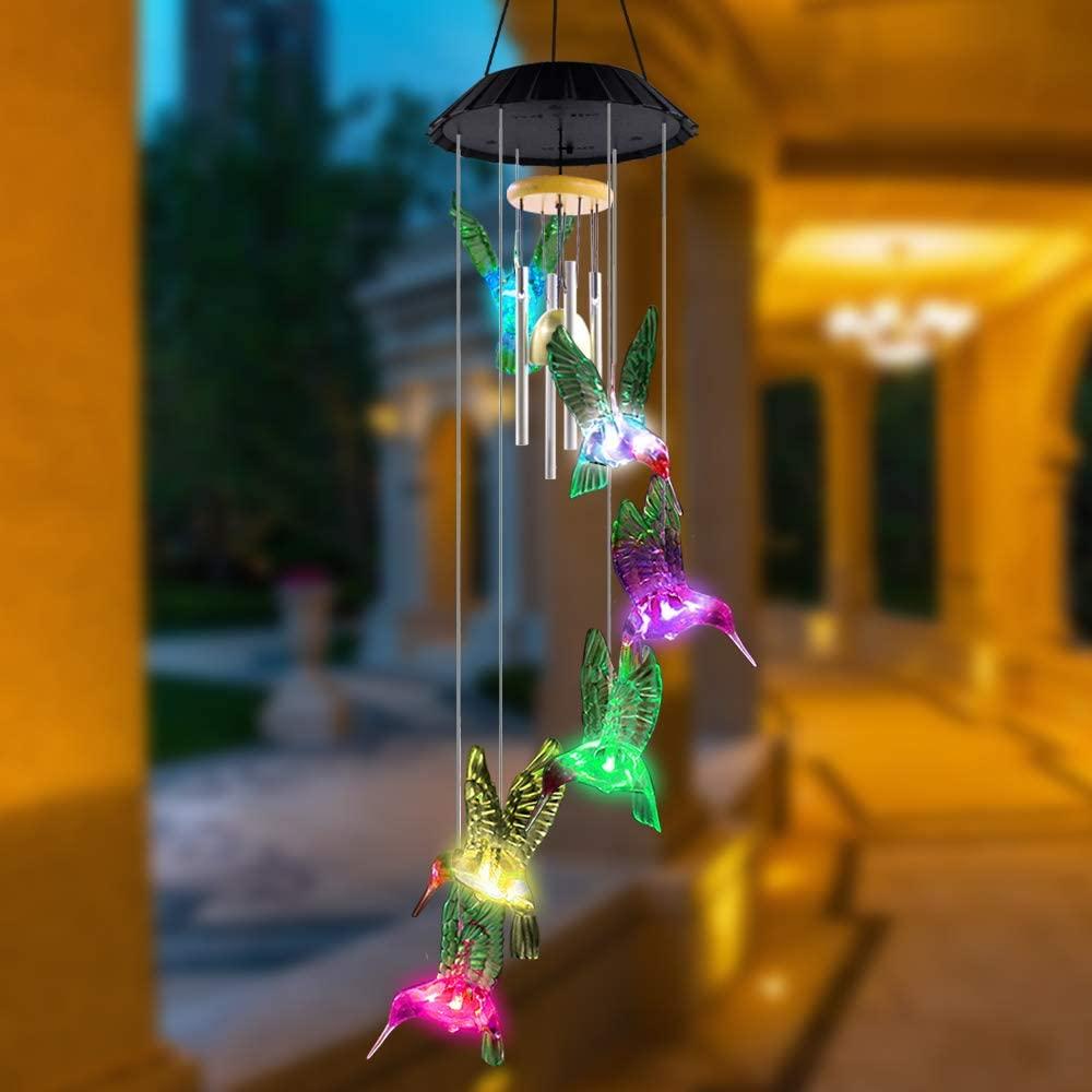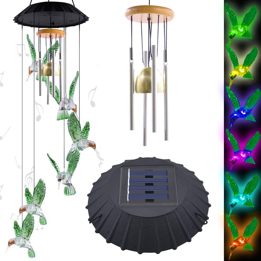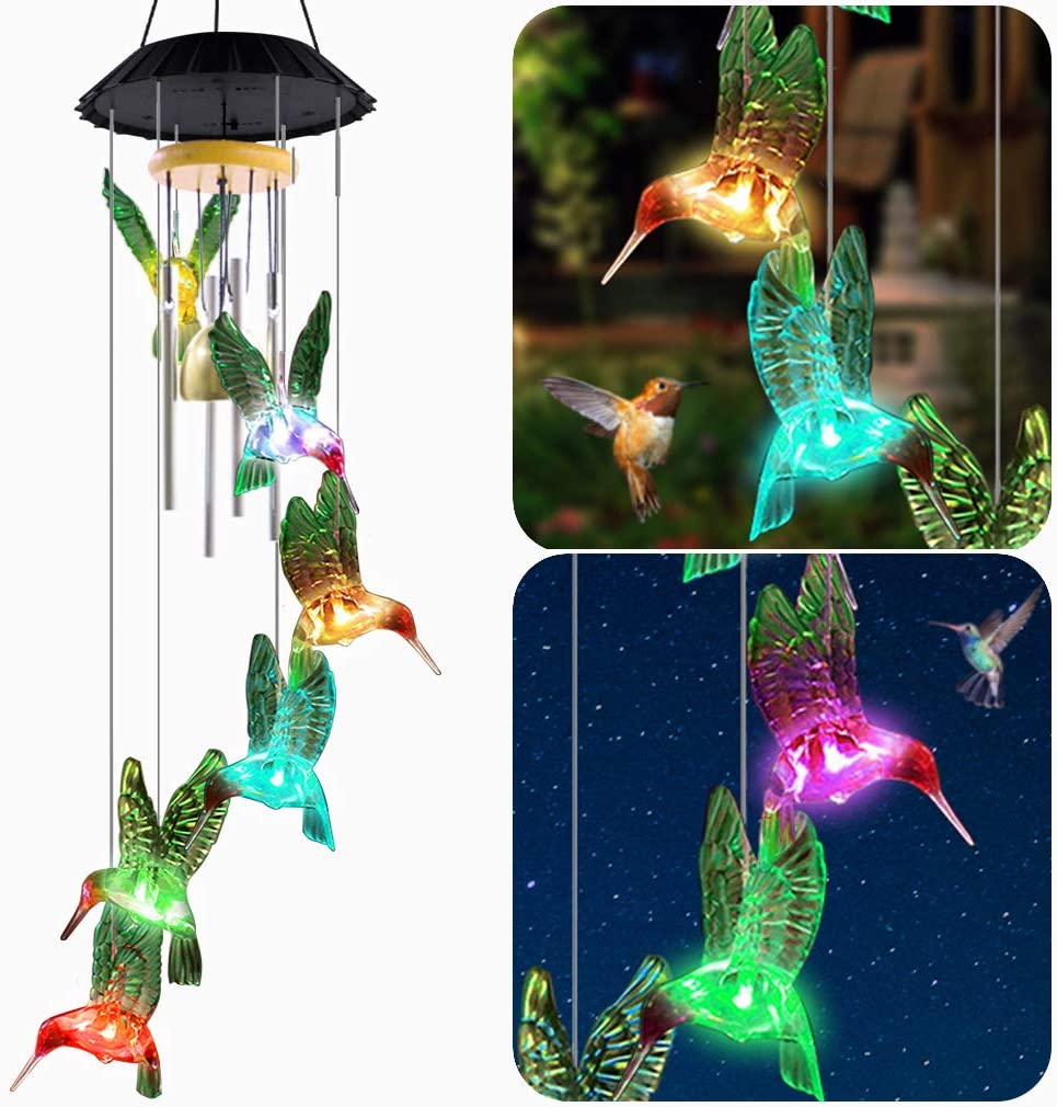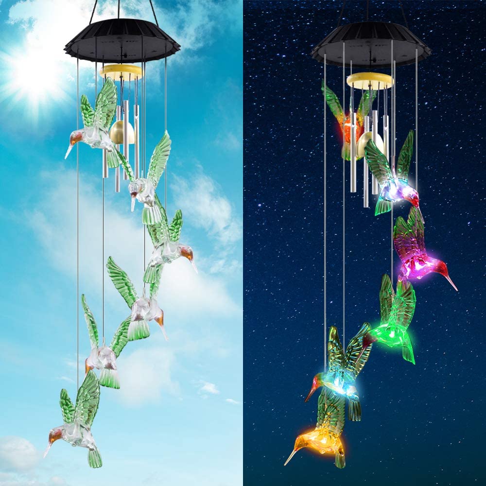 【COLOR CHANGING LED LIGHTS】 Our color changing wind chimes puts on a spectacular light show when day turns to night. Featuring 6 light up hummingbirds, the outdoor solar wind chime is colorful, chirpy & oh-so bright!